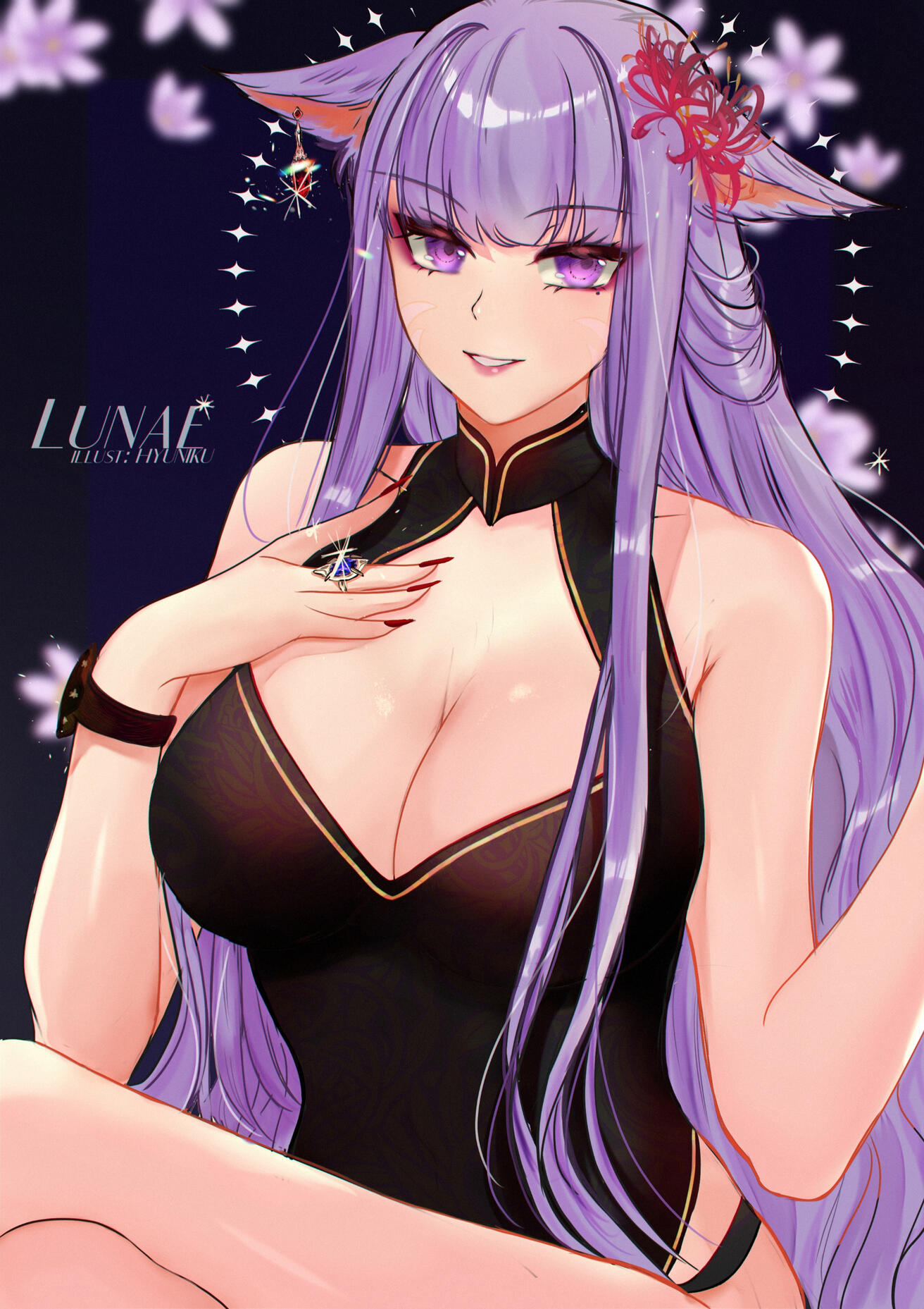 Lunae’s reputation as the enigmatic and seductive Lavender Lady still precedes her. Known for her charm and allure, she often attends high-profile gatherings, where she weaves her influence through whispers and intrigue. You might encounter her in a moment of elegance, though it’s never clear if she’s friend or foe.