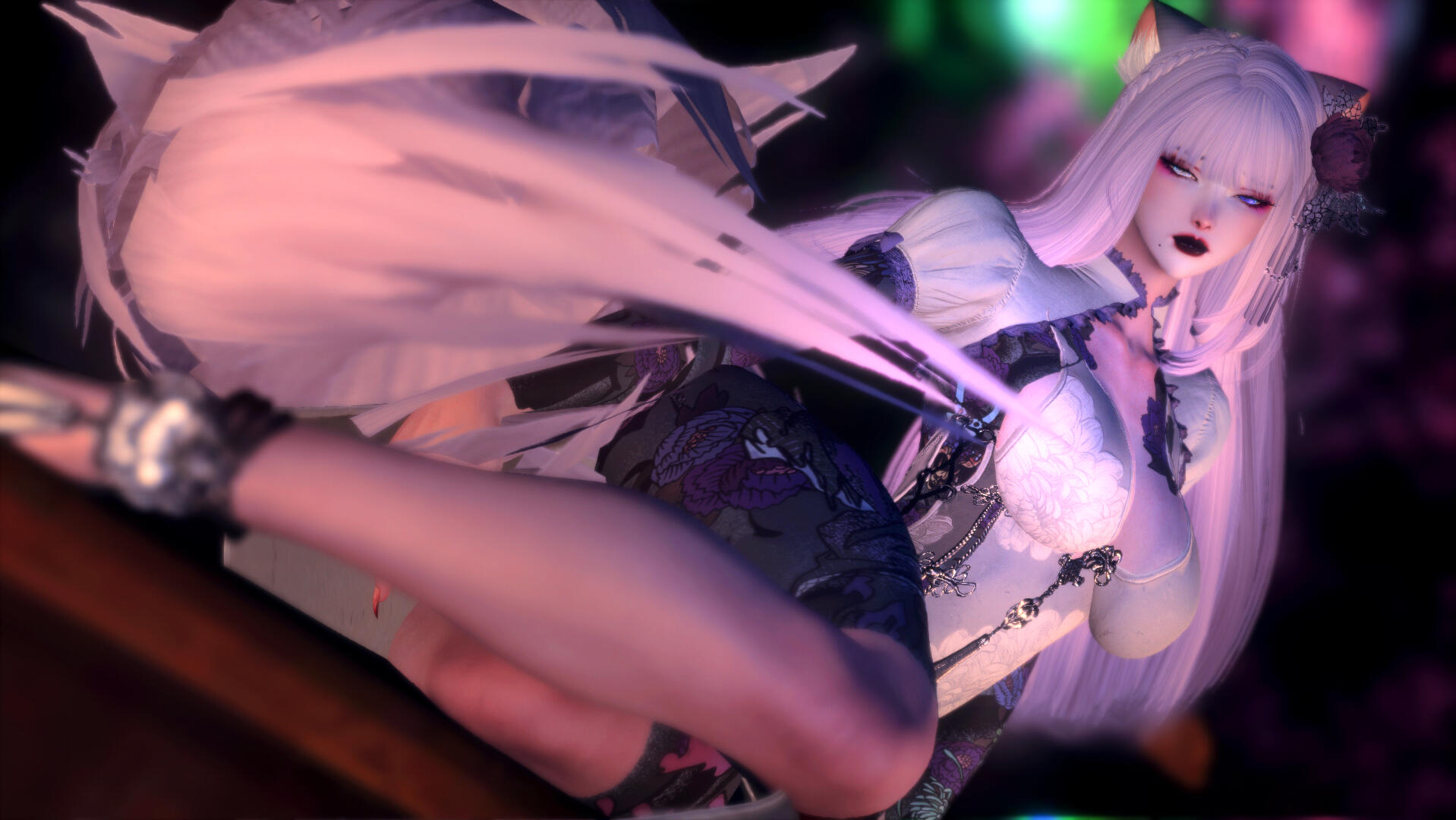 Lunae Kaneshiro was born into the elusive Kaneshiro Clan, a lineage of feared shinobi cloaked in the mist-shrouded mountains of Hingashi. Their loyalty belonged to Tsukuyomi, the Moon Kami, revered as both protector and guide. As a child marked by prophecy, Lunae was destined to become a spiritual herald, a bridge between the living and the dead, aiding spirits in their passage and guarding the delicate balance between realms.But fate, cruel and unyielding, had other plans.Two days after her birth, Lunae was stolen from her family—some say by treachery, others by dark magic—and spirited away to Limsa Lominsa by a sorceress named Jeanne. Stripped of her heritage, she was raised not as a shinobi princess but as a slave, molded into a child assassin and dancer, her innocence shattered by the brutal lessons of her captor.Yet, Lunae’s spirit refused to break. She honed her skills, biding her time, and when the moment came, she exacted her revenge in a storm of blood and fury. Escaping her chains, she carved a path through the criminal underworld, rising to power as the Lavender Lady, the Oyabun of the Nisshoku-Gumi—a feared Yakuza family in the East. But despite her ruthless ascent, the ghosts of her past, her clan’s shattered legacy, and the haunting whispers of Tsukuyomi never left her.Her thirst for vengeance transformed into a hunger for control—not just over the streets of Kugane but over her own destiny. Lunae sought to rebuild what had been stolen, to breathe life back into her family’s legacy, but the weight of her bloodline’s curse loomed ever closer.